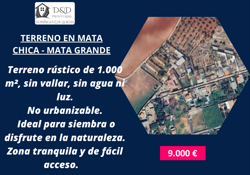 Terreno rústico en venta – Mata Chica / Mata Grande, cerca de Vistazul Se vende terreno rústico de 1.000 m², sin vallar, sin agua ni luz. No urbanizable (no se puede construir). Ideal para siembra, recreo o disfrute en la naturaleza. Zona tranquila y de fácil...